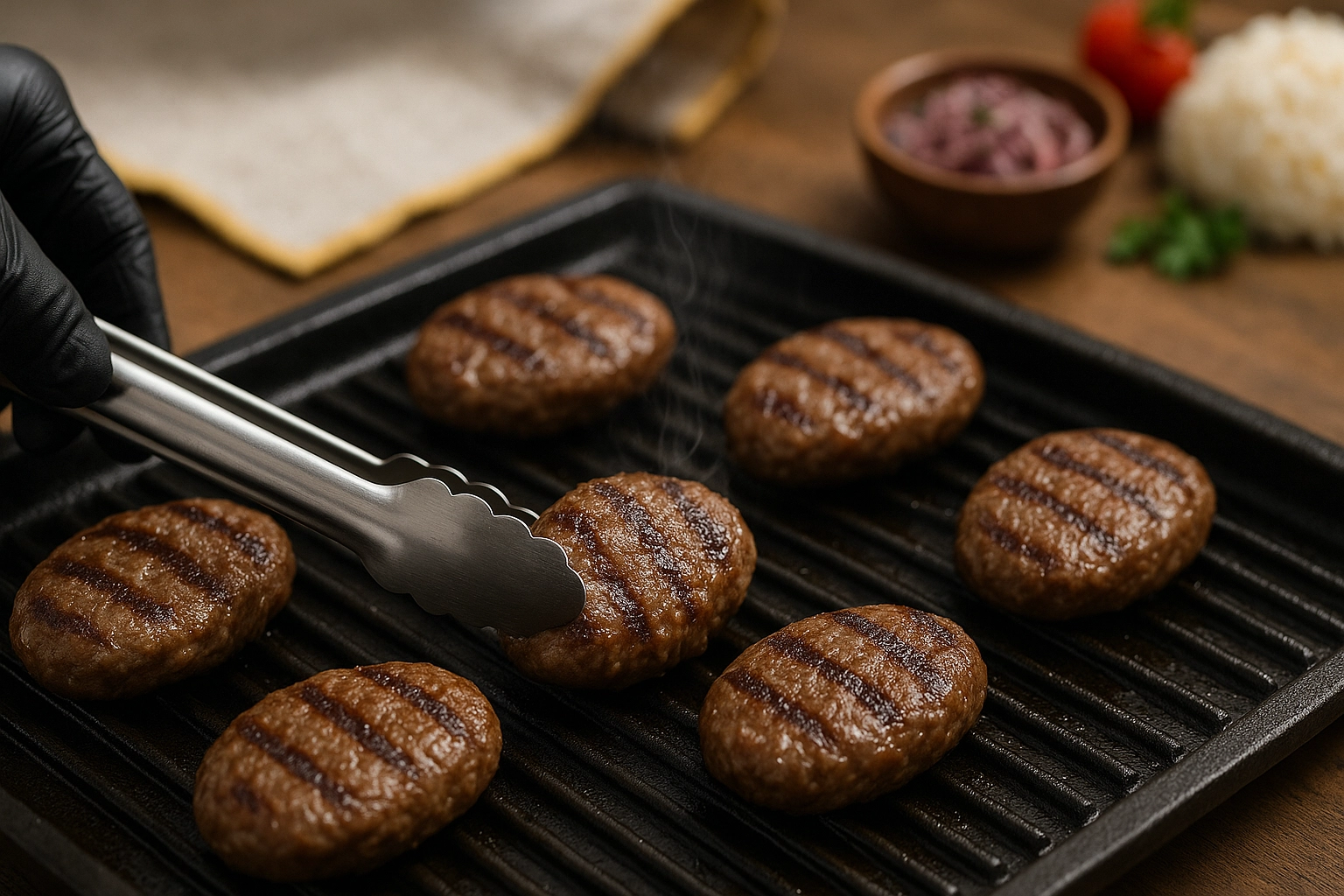 • Yüzey kuruluğu: Pişirme öncesi köfte yüzeyindeki fazla nemi alın; çok hafif yağ fırçası yeterlidir.